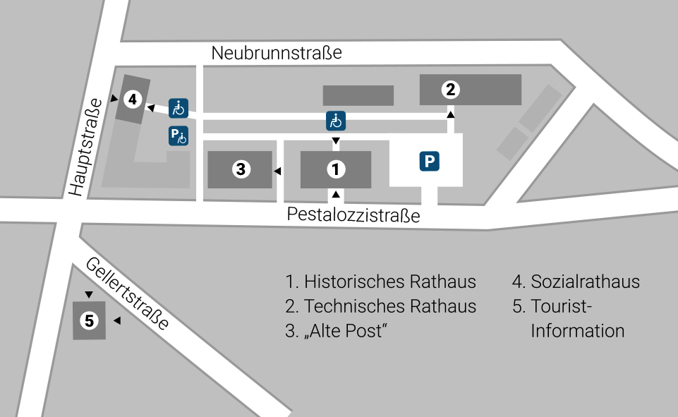 Historisches Rathaus Technisches Rathaus Alte Post Sozialrathaus Tourist-Information